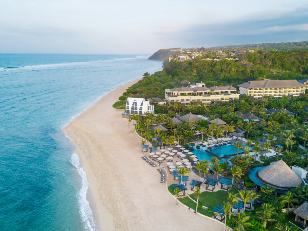 - Clifftop Panoramas – The resort is on the Uluwatu cliffs. It offers 180-degree ocean views from villas, restaurants, and the spa. The horizon looks open and endless.