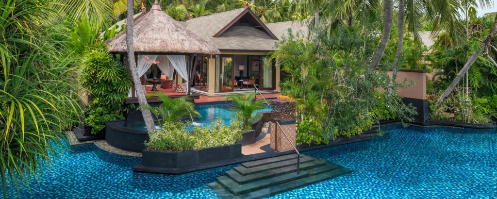 It offers world-class amenities with an on-site spa and wellness centre, business facilities, outdoor pools, six dining venues, a marine-inspired spa, a beachfront chapel, and recreational activities.