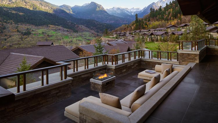 • The resort’s villas offer alluring views of the Minshan mountains.