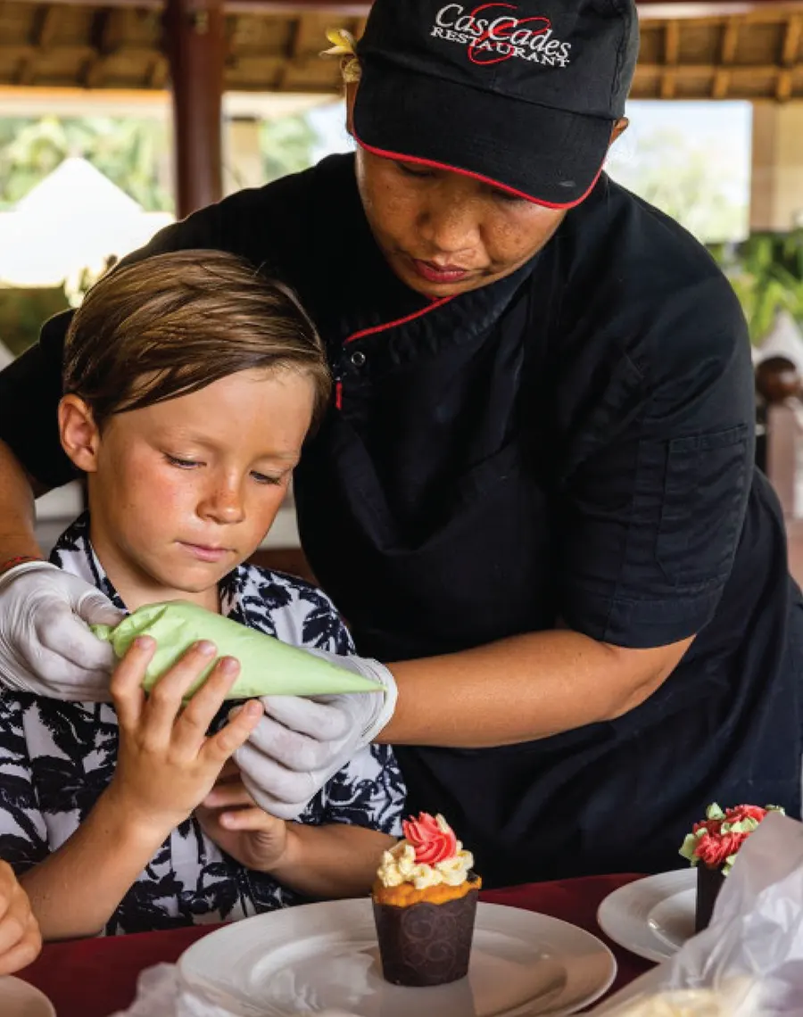Enjoy a spectacular Kecak performance under the stars at CasCades Restaurant, followed by a second mesmerising Balinese dance during dinner. Savour a lavish buffet and live BBQ stations curated by our culinary team, featuring highlights from the Indonesian archipelago and beyond.