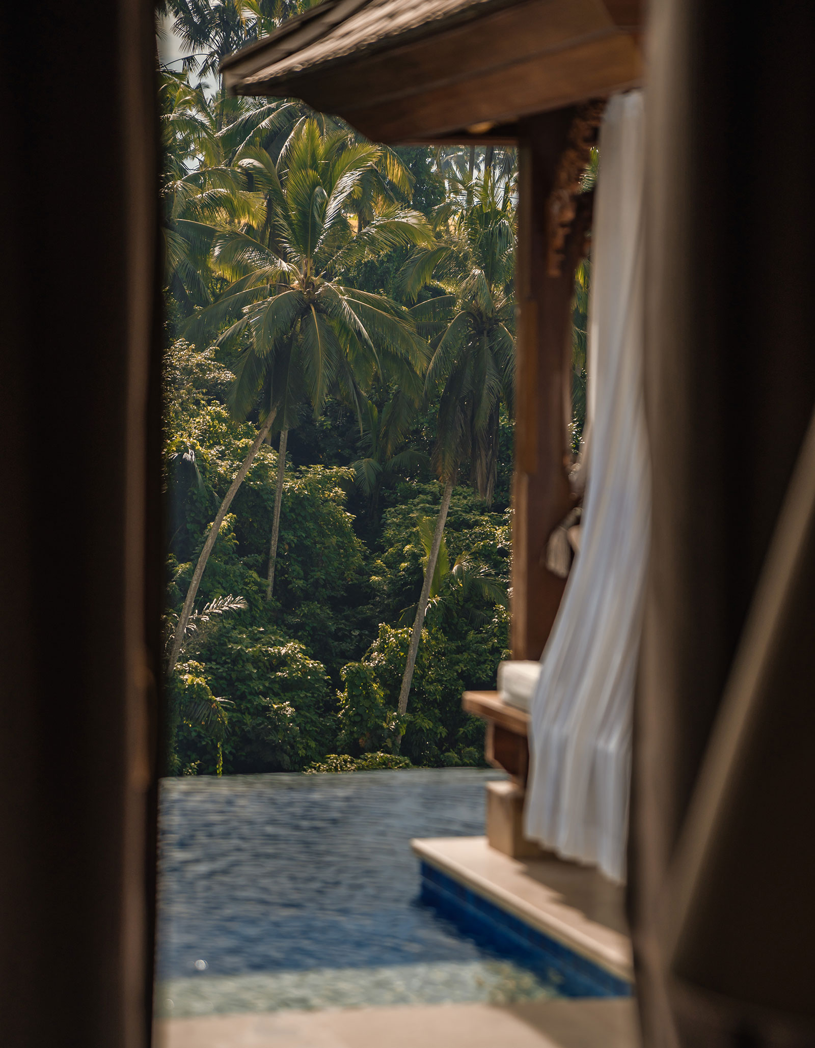 The suites and villas offer a modern yet authentically Balinese ambiance. Featuring spacious open bathrooms and breathtaking valley views as a consistent highlight, these villas exude exceptional privacy, providing ample space for family gatherings, especially with the private heated pools. We can set up an extra bed in the one bedroom suites or villa, and one child can share the main king bed with parents if they so wish, however, particularly with older children, the option of reserving two rooms is recommended and note we cannot fit two extra beds in a one bedroom suite or villa. Our deluxe terrace villas conveniently connect through doors on the private terrace (not internally) or our optimal family rooms are our larger two-story, two-bedroom Vice Regal Villas.